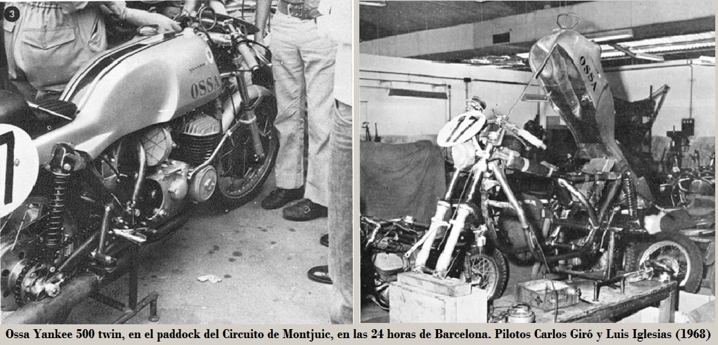 Durante aquel mismo año (1968) en OSSA consideraron que una prueba concluyente fuera participar en las 24 Horas de Montjuïc y se inscribe así la primera Yankee para la carrera, la motocicleta era exactamente igual a la que Dick Mann se llevara a los Estados Unidos pero vestida de sport; participaron Carlos Giró y Luís Iglesias debiéndose de retirar por una caída. Se empiezan las pruebas para optimizar el producto ensayando carburadores, cilindros, frenos etc., y ensayos que se eternizaran.