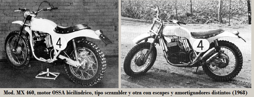 A principios de 1968 llegan dos bastidores a la Zona Franca en Barcelona para acoplarles sus motores correspondientes, un motor terminado, pero en fase de prototipo, había sido enviado a los Estados Unidos para significar las cotas de los bastidores, equipándolas con motor OSSA de 460 cc 2T - 2 cilindros de 230 cc sustituyendo a los 2 de 175 cc que eran los que a priori debía llevar el invento. Dick Mann se encargó de probar el prototipo en Barcelona y se llevó a los Estados Unidos la moto en cuestión con varios motores en período de pruebas, que se instalaron en un bastidor diseñado por Dick Man.