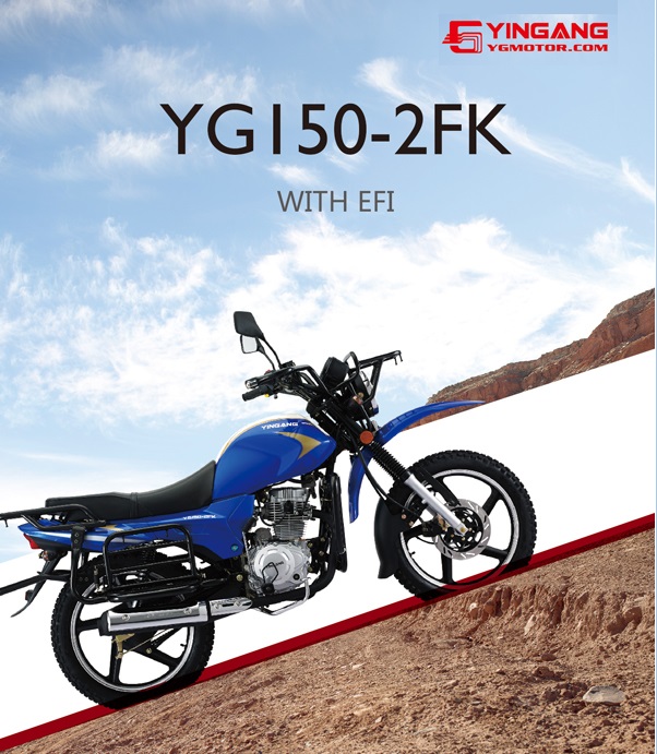• YG150-2FK con motores CG150 / CG200, 11.39 CV / 8 500 rpm, 5 marchas, compresión 9.0:1, refrigerada por aire, carburador, batería 12 V / 7 Ah, arranque dual (eléctrico / {kick starter}), llantas D/T 3.00 x 18" / 3.25 x 18", frenos D/T disco / tambor, velocidad máxima 95 km/h, tanque 16 L y 132 kg