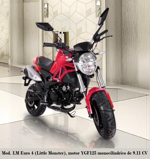 - LM2 125 {Euro 4}: motor YGF125, 9.11 CV / 7 500 rpm, compresión 9.0:1, {inyección EFI}, {sistema ECU}, velocidad 85 km/h.