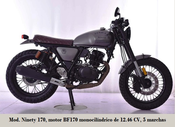 - Ninety 170: motor BF170, 12.46 CV / 8 000 rpm, refrigerada por aire, 5 marchas, compresión 9.2:1, arranque eléctrico, carburador, batería 12 V / 7 Ah, suspensión D/T horquilla telescópica / 2 amortiguadores hidráulicos, neumáticos 4.00-17" / 4.50-17", frenos de disco D/T, velocidad máxima 95 km/h, tanque 11 L y 130 kg.
