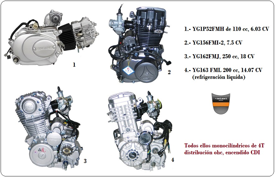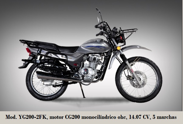 • YG200-2FK: motor CG200, 14.07 CV / 7 500 rpm, resto como la anterior.