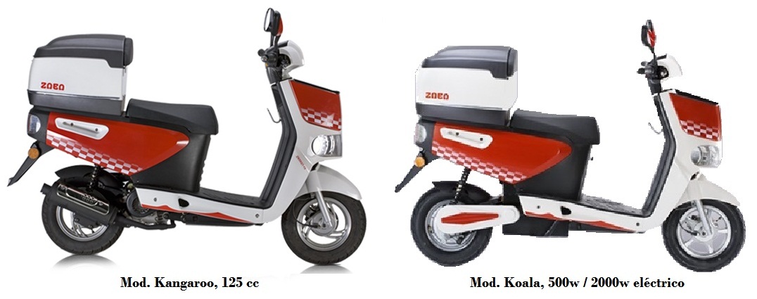 • Koala: de 500 W / 2000 W (litio), neumáticos D/T 3.50 x 10", velocidad máxima 45 km/h, peso 94 / 149 kg (según baterías)