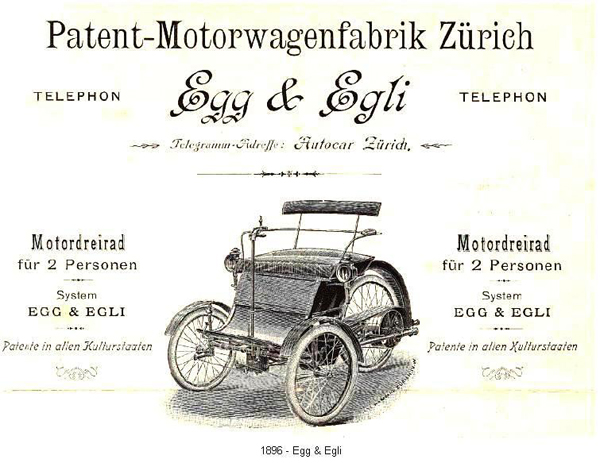 Rudolf Egg, un ingeniero mecánico, construyó en 1893 un automóvil para su propio uso. Tres años más tarde fundó la compañía "Egg & Egli", con sede en Zurich gracias a una inyección de capital de un banquero suizo llamado Egli.