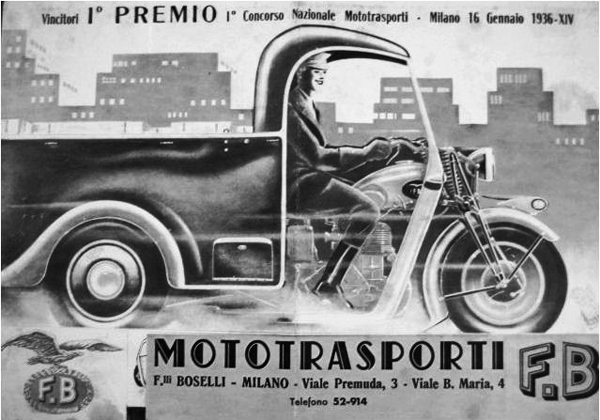 A mediados de los años treinta, la familia Boselli adquirió un edificio en Bolonia, fundando la firma "F.B. F. Boselli Motocarri", dedicándose a la producción de vehículos de tres ruedas, motocarros tipo delta, equipados con motores monocilíndricos de 250, 350 y 600 cc ohv, con una capacidad de carga de 350, 600 y 800 kg respectivamente.