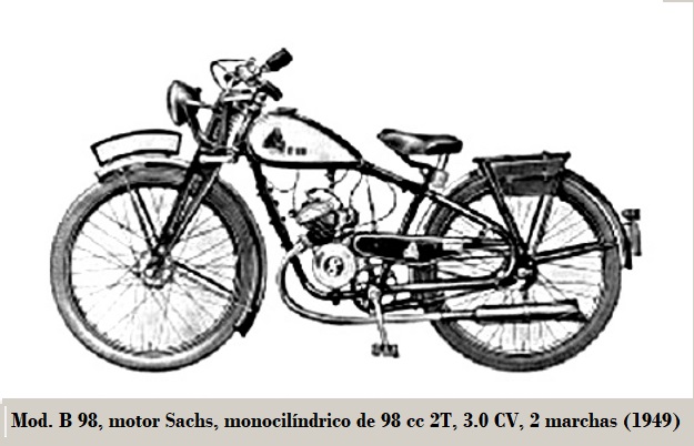 • B 98/2: motor SACHS 98 cc, 3.0 CV, 2 marchas. 1949-1953
