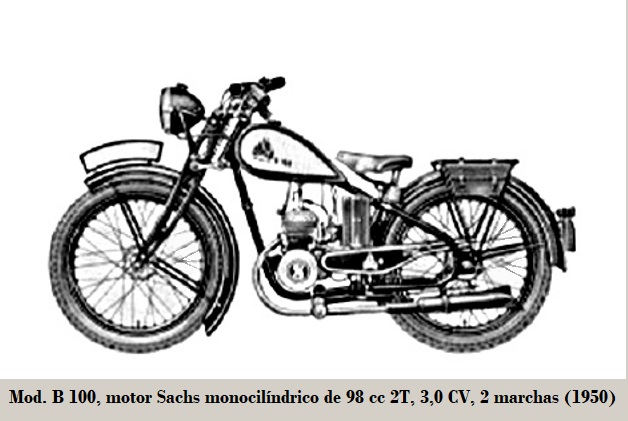 • B 100: motor Sachs de 98 cc, 3.0 CV, 2 marchas. 1950-1953