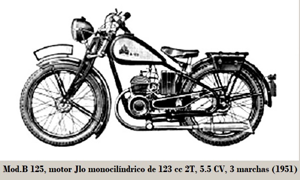 • B 125: motor Jlo de 123 cc, 5.5 CV, 3 marchas. 1951-1952