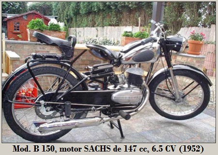 • B 150: motor Sachs ACHS de 147 cc, 6.5 CV, 4 marchas. 1952-1953