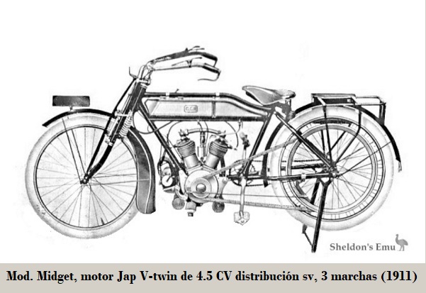 También fabricaron la Midet, motocicleta sin sidecar equipada con motor JAP V-twin de 4.5 CV también con distribución sv, caja de cambios Armstrong ¹ de 3 velocidades y transmisión final por correa, sin sidecar.