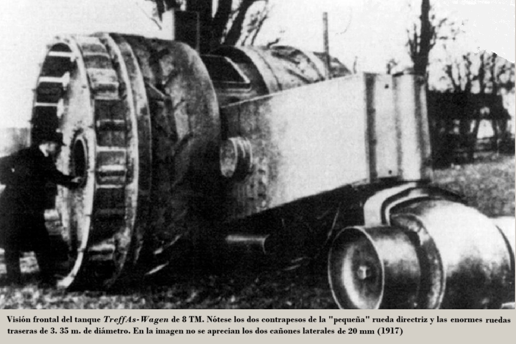 También fabricaron (1917) un carro de combate de 8 Tm, el TreffAs-Wagen con distribución tipo delta, con dos enormes ruedas traseras de 3.35 m de diámetro que formaban la base del chasis. La tripulación era de 3-4 personas situadas entre ambas ruedas en la parte trasera del casco, entre las ruedas principales. El acceso al interior del tanque era a través de una escotilla en la parte trasera, y la visibilidad desde el asiento del conductor era muy limitada debido a las ruedas principales y al diseño general. La única rueda delantera (directriz), montaba sendos contrapesos laterales.