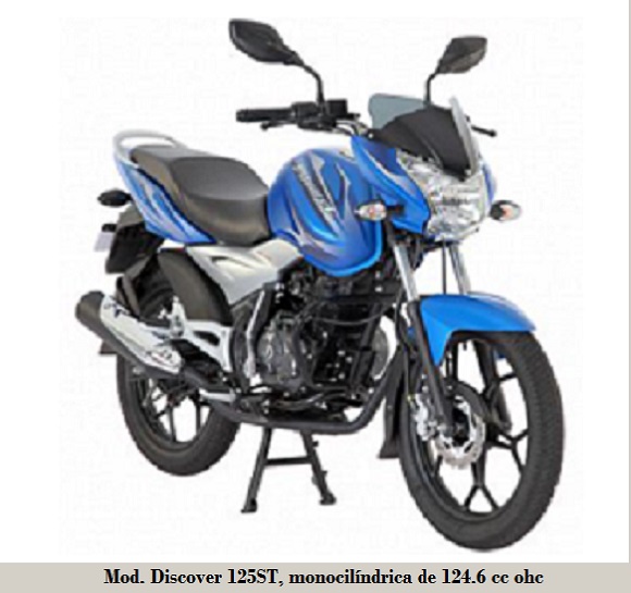 - Discover 125ST: 124.6 cc, (54.00 x 54.4 mm), 12.82 CV/9.000 rpm, compresión: 9.8 +/- 0.5:1, arranque mixto (eléctrico/kick start), frenos D/T disco Ø 200 mm/tambor Ø 130 mm, tanque 10 L (reserva 3.5 L) y 121 kg.