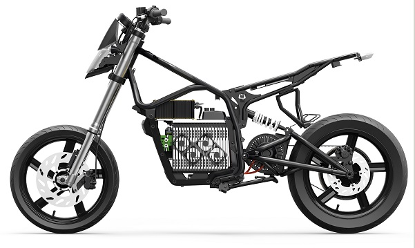 motor eléctrico DC con escobillas de 25 Kw, (equivalente a 34 CV), autonomía 70 Km, batería Lipo (Lithium polymer) de 3 Kwh/74V (nominal), recarga en 2 horas (220V), admitiendo hasta mas de 2000 recargas, neumáticos D/T 110 - 70 R17"/150-60 R17", frenos D/T disco Ø 285 mm/Ø 220, velocidad máxima 120 km/h y 135 kg de peso.