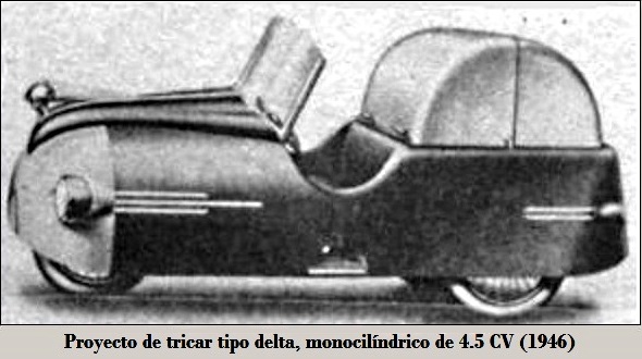 Se trataría de un pequeño tricar tipo delta, con carrocería plástica, equipado con motor monocilíndrico de 4.5 CV, refrigerado por aire, transmisión a las ruedas traseras, suspensión trasera con dos muelles helicoidales, ruedas de radios de 26" de motocicleta.