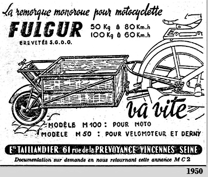 La firma también fabricó remolques mono-rueda para motocicletas, el M100 y el M50 para velomotores, durante la década de 1950....