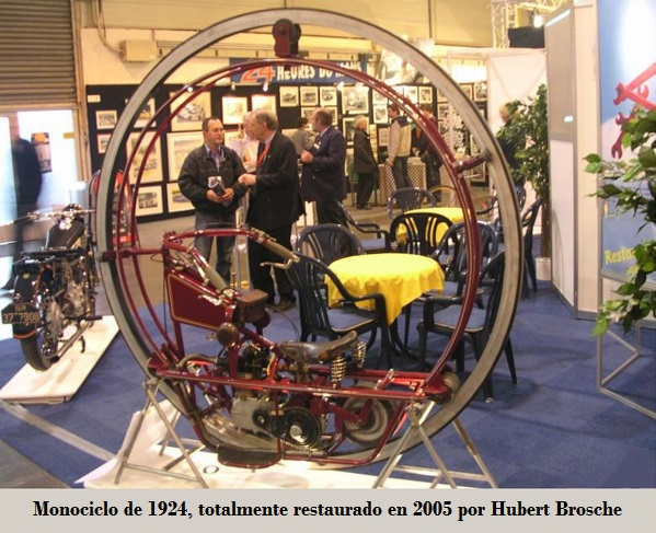 En realidad se trataba de una motocicleta sin rueda delantera siendo la trasera de pequeño tamaño con la que transmitía el movimiento por fricción sobre la superficie de la parte interior del monociclo...