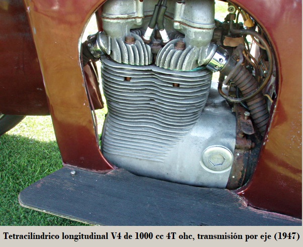Equipado con un motor V4 longitudinal de 1000 cc de 4T distribución ohc con el cigüeñal de cada bancada girando en direcciones opuestas para suavizar la transmisión final mediante eje y con una carrocería envolvente realizada con plancha de acero estampado que formaba parte del bastidor.
