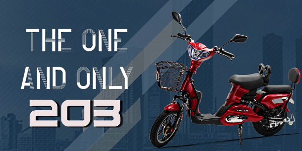 • 203: motor 650 W, batería 48 V / 12 Ah, ruedas D/T 2.50 x 16", velocidad máxima 40 km/h, autonomía 40 km, capacidad de carga 150 kg.