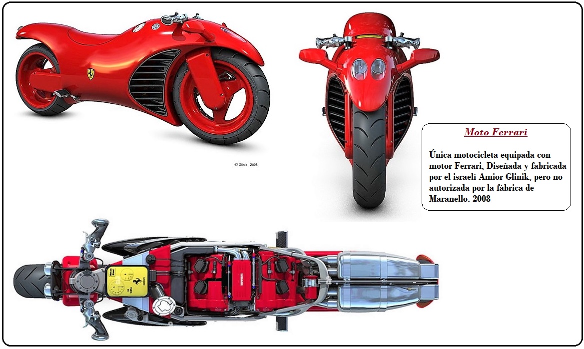 Otra de las motocicletas fabricadas con el logo de Ferrari - pero no autorizado por Ferrari - fue producida por el israelí Amir Glinik con sede en la población de Kfar Saba, el distrito de Hamerkaz.