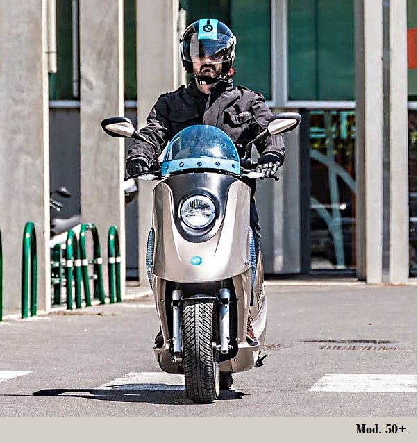 - 50+: biplaza, motor de 4.0 kW, (equivalente a una 125 cc térmica), batería Li-on de 74 V / 78 Ah (recarga de 3 a 9 h según cargador), frenos de disco con CBS D/T ø 220 mm, neumáticos Michelin D/T 130 - 60-13", autonomía 120 km, batalla 1230 mm y 150 kg.
