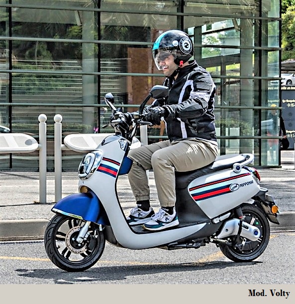 - Volty: biplaza, motor Bosch de 1.5 kW, batería Samsung Li-on 60 V / 24 Ah (recarga 5 h con toma de 230 V), frenos de disco con CBS D/T ø 220 mm, batalla 1080 mm, autonomía de 53 km (100 km con 2 baterías) y 77 kg.