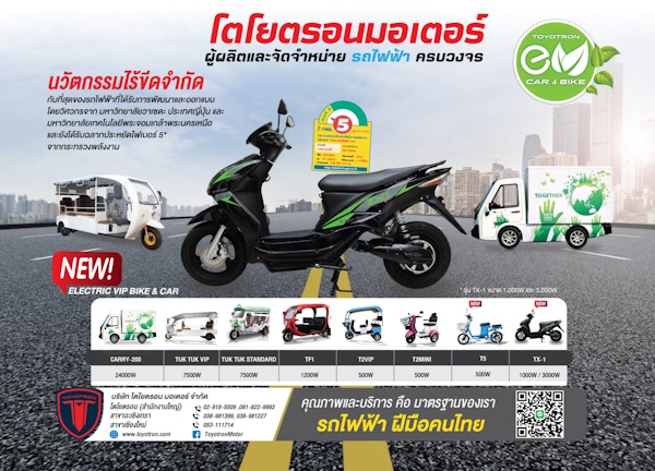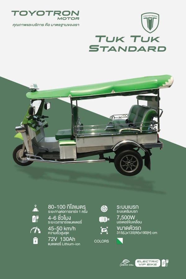 La firma “Toyotron Motor Co.”, con sede en el 6/4 Soi Rarm Intra 82, Min Buri, Bangkok, creada en 2007 por Okas Tepalagul - industrial que lleva casi tres décadas en el sector automovilístico tailandés – dedicándose a la producción de vehículos de 2, 3 y 4 ruedas con motores eléctricos.