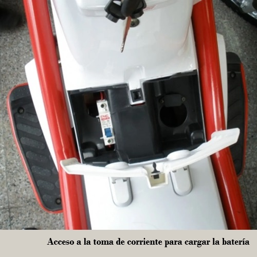 • Standard: biplaza (+ conductor), motor de 7.7 kW, batería 42 V / 130 Ah, recarga 4-6 h, autonomía 80-100 km, velocidad 45-50 km/h, suspensión D/T horquilla telescópica /