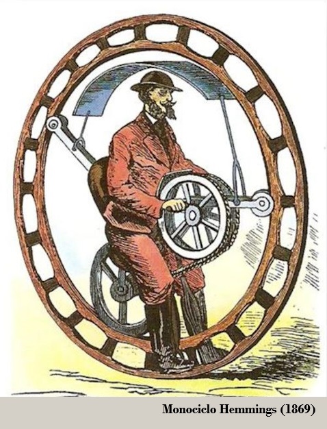 El resto de vehículos de tracción humana existentes durante la segunda mitad del siglo XIX tanto de 1, 2 o 3 ruedas se basaban en variantes las bicicletas, calificados como {monociclos a tracción humana}