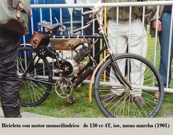 La "Sanciôme Constructeur", con sede en la Route des Salins, Clermont-Ferrand, departamento de Puy-de-Dôme, fabricó en 1900, bicicletas equipadas con motor auxiliar situado dentro del cuadro y a través de una cadena transmitía la fuerza a un eje situado sobre la rueda trasera y mediante un rodillo de fricción la movía...