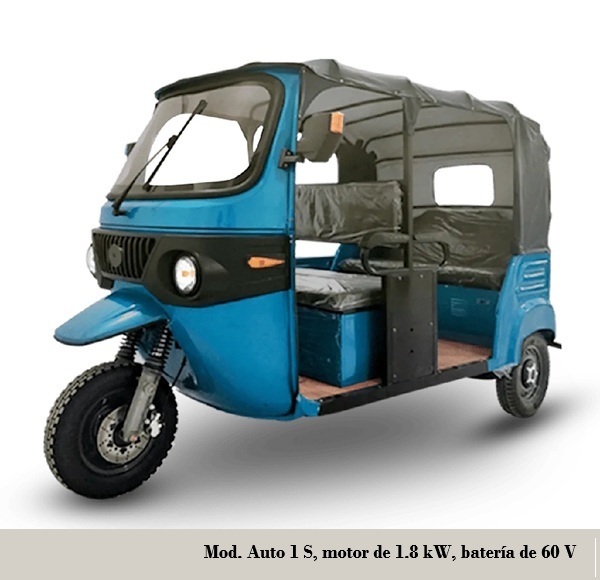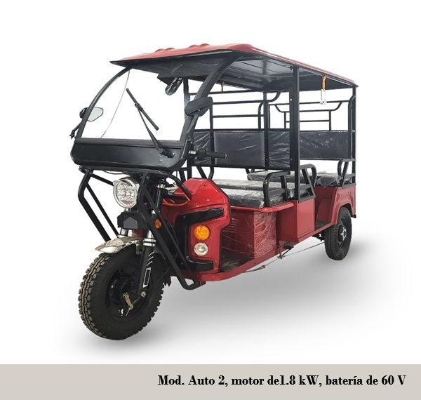 delta, con motor de 1.8 kW, batería de fosfato de litio de 60 V, autonomía 153 km, recarga 8 h, llantas D/T de 16“, frenos D/T disco / tambor, capacidad 9 plazas (8 pasajeros + conductor), velocidad máxima 55-60 km/h, carga máxima 800 kg y 320 kg (sin batería)