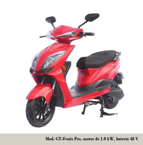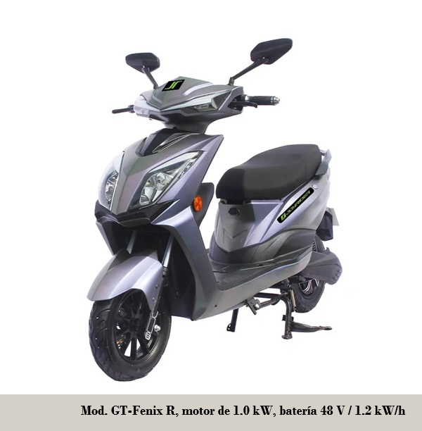 - GT-Fenix R: batería 48 V / 1.2 kWh, autonomía 50-55 km, velocidad máxima 50 km/h, frenos D/T disco / tambor
