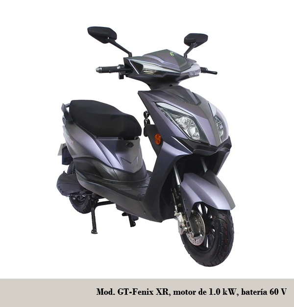 - GT-Fenix XR: batería 60 V / 1.2 kWh, autonomía 60-65 km, velocidad máxima 50 km/h, frenos D/T disco / tambor.