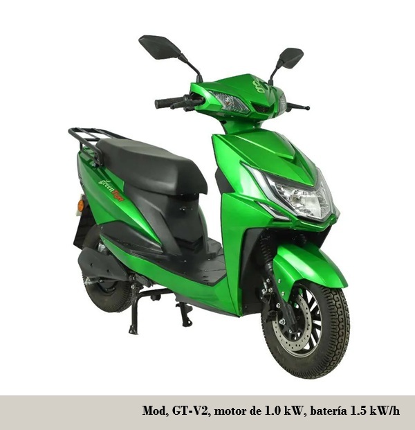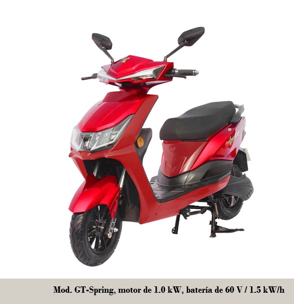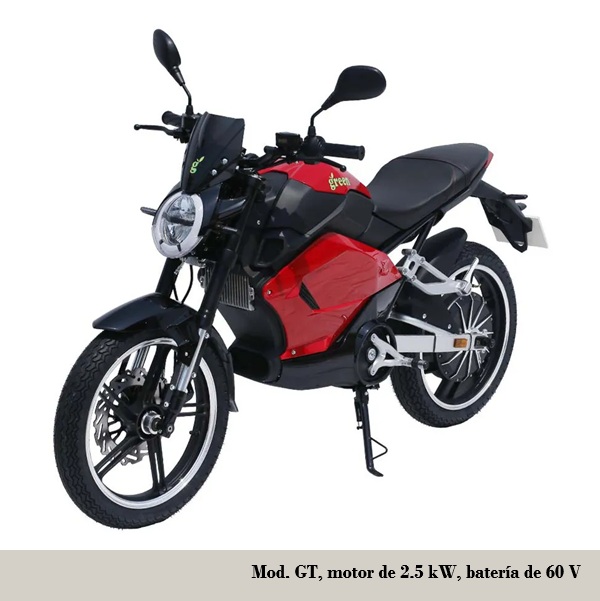 • GT Rider: motor de 2.5 kW, batería 72 V / 2.5 kW/h, autonomía 90-100 km, recarga 4-5 h, velocidad máxima 90 km/h. frenos de disco con