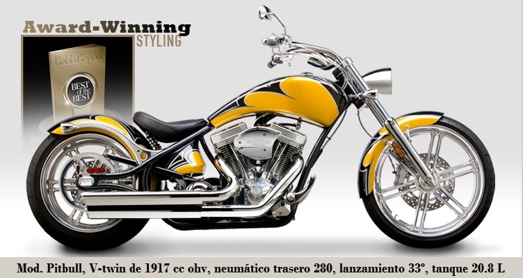 - Pitbull: 1916 cc a 33º, compresión 9.6:1, bastidor rígido, sillín con muelles, lanzamiento 33º, neumáticos D/T 130 - 60-R23/280 - 40-R20 y tanque 20.88 L. 2008-2011. Obtuvo el premio "Excellence In Motorcycling Award", en la Expo´s 2007