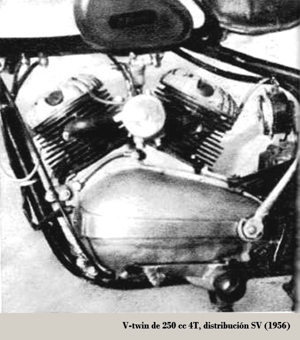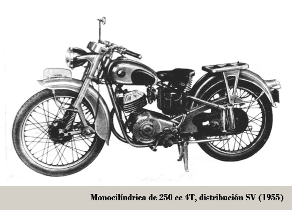 En 1952, lanzó al mercado sus primeras motocicletas de 4T con distribución sv, en versiones monocilíndricas y V-twin, ambas de 250 cc, distribución sv, kick starter, carbrador único, equipadas con suspensión trasera basada en émbolos, mientras que la delantera era distinta según fuera su cilindrada; así las monocilíndricas montaban un horquilla leading link tipo Earles mientras que la bicilíndricas montan horquilla telescópica estándar; todas ellas con motor monobloque, frenos de tambor D/T...