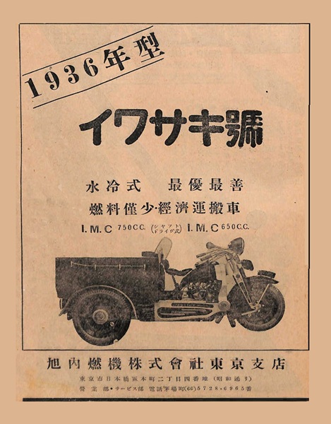 Fue una empresa ensambladora / productora de vehículos de 3 ruedas tipo motocarros denominados IWASAKI (イワサキ号), en configuración tipo delta, equipados con motores V-twin de 650 y 750 cc 4T con distribución sv, refrigerados por agua, suspensión D/T horquilla doble con resorte central tipo leading link / posiblemente con ballestas semielípticas, ruedas D/T de disco y frenos de tambor...