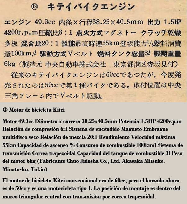 posguerra, aunque de vida efímera (1954-1955), en este caso dedicada a la fabricación de motores, para ser acoplados a bicicletas y, que al parecer ¹ fueron vendidos y distribuidos por "Central Motor Vehicle Co., Ltd.", Tokyo