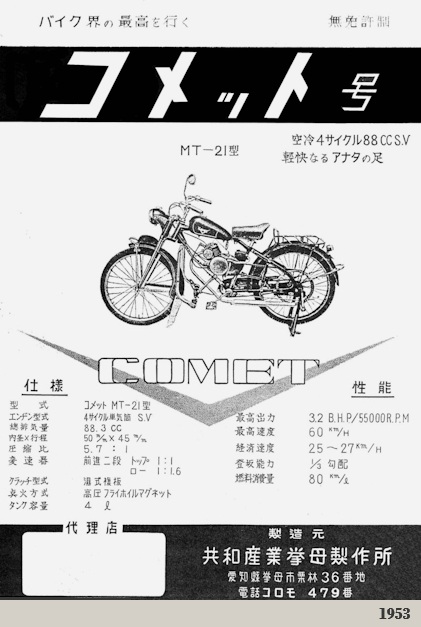 La "Kyowa Sangyo Co., Ltd., Koromo Works", con sede en el 36 Kuribayashi, ciudad de Toyota, prefectura de Aichi, en 1953 fue la responsable del ensamblaje de ciclomotores.